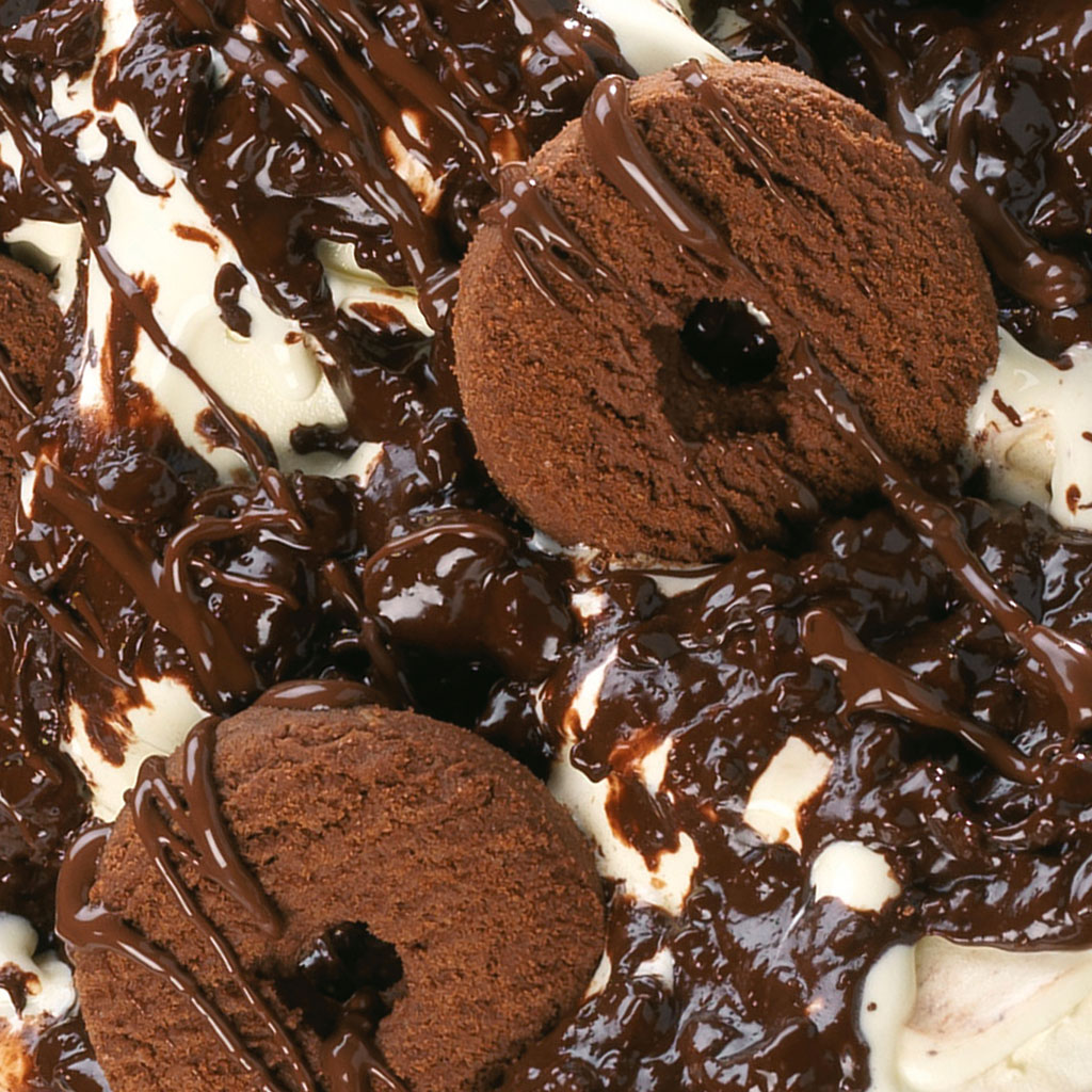 Variegatura dal gusto caratteristico, con granella di biscotti frollini al cacao, arricchita da cacao magro e nocciola. Da utilizzare in estrazione per arricchire gustosi gelati.